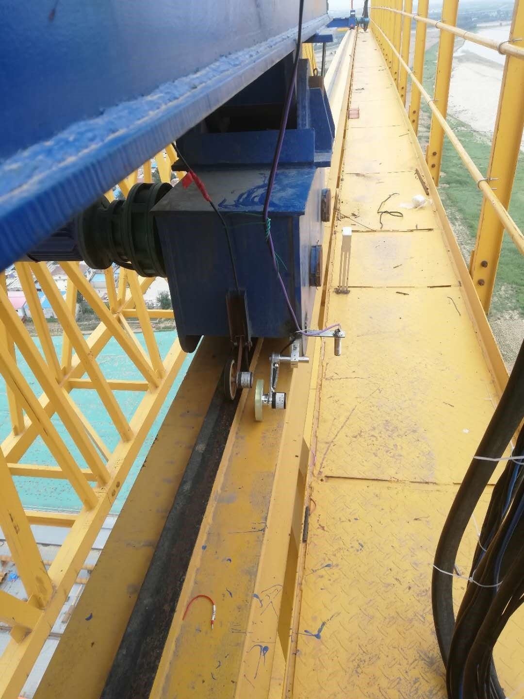 3. 龍門吊高度53米,跨度32米,為齊魯黃河大橋施工主要裝備,設(shè)備架設(shè)在黃河橋上,設(shè)備最高處距離黃河水面近80米,設(shè)備安全運(yùn)行,對(duì)項(xiàng)目進(jìn)度起到至關(guān)重要的作用,鄭州愷德爾遠(yuǎn)程監(jiān)控系統(tǒng)的安裝,為該設(shè)備正常運(yùn)行提供了可靠保障。